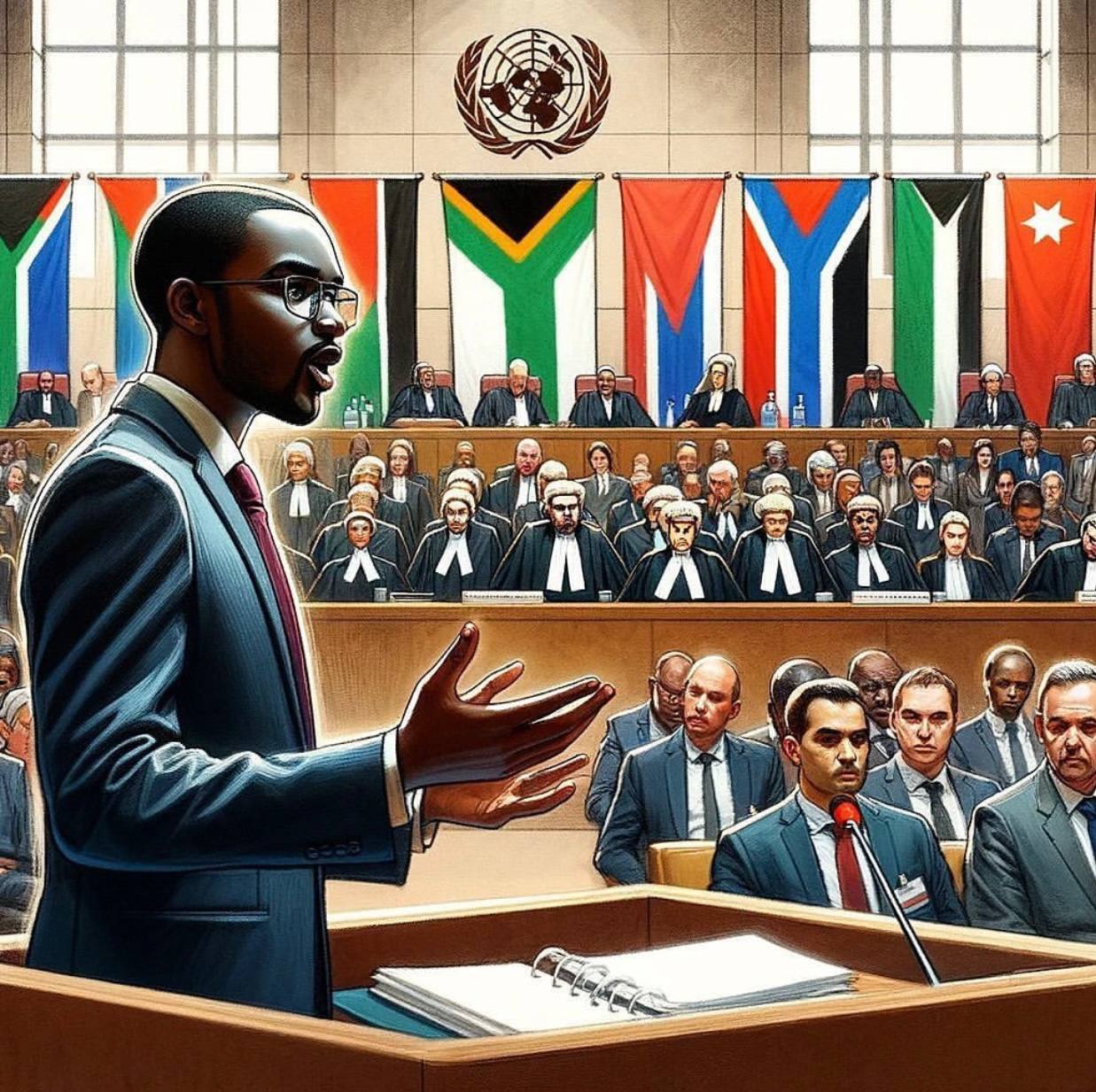 L’accusa del Sudafrica e il vasto appoggio internazionale sembrano tuttavia causare qualche nervosismo tanto da far dichiarare a Gilad Erdan, rappresentante permanente d‘Israele presso le Nazioni Unite, che ad essere processato all’Aja dovrebbe essere proprio l’ONU, per complicità nello scavare tunnel terroristici a Gaza, nell’utilizzare gli aiuti internazionali per produrre missili e nell’incoraggiare l’odio e l’omicidio. Erdan ha sostenuto che il processo dell’Aja dimostrerebbe che l’organizzazione internazionale e le sue istituzioni “sono diventate armi al servizio dei terroristi” e ha chiesto che il procedimento venga “gettato nella pattumiera della storia”.