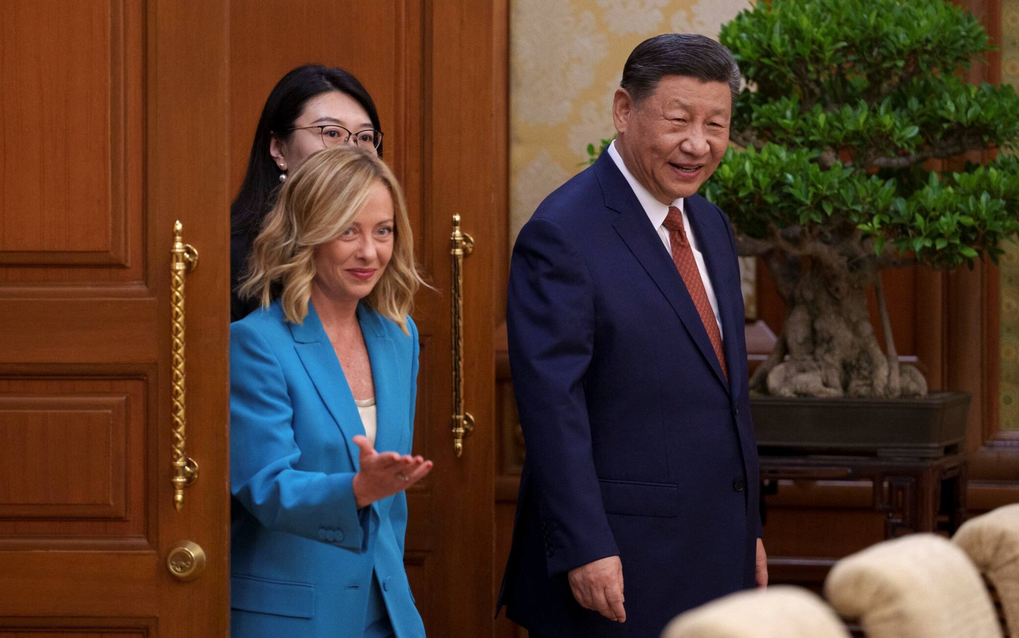 La premier, accolta dal picchetto d’onore dell’Esercito di Liberazione del Popolo, ha iniziato ieri la sua visita di 3 giorni riunendosi con il primo ministro Li Qiang, prima di assistere all’inaugurazione del 7º Forum Italia-Cina, dove erano presenti una quarantina di aziende nostrane. La giornata di oggi è invece cominciata con Meloni che ha timbrato il cartellino a una mostra su Marco Polo per poi partecipare al più importante degli incontri in programma, quello con il presidente Xi Jinping.