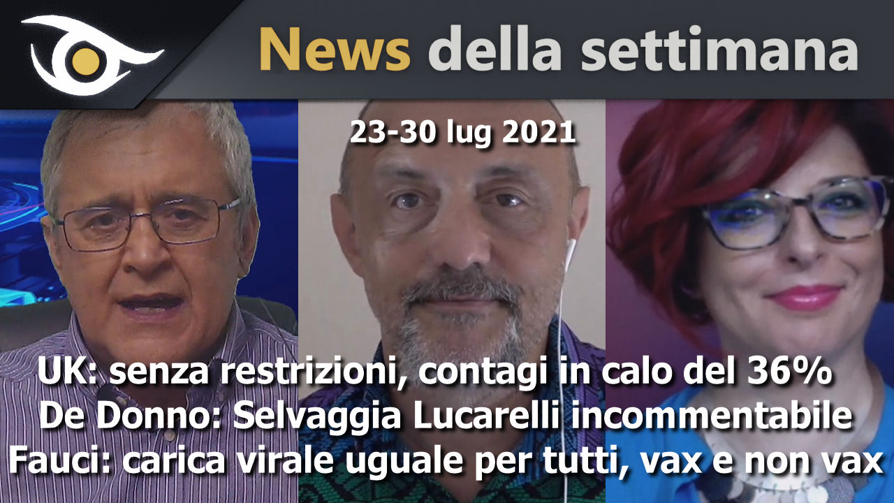UK: Senza le restrizioni, contagi in calo del 36% – De Donno: Selvaggia Lucarelli incommentabile – FAUCI: carica virale uguale per tutti, vaccinati e non – Israele: tutti pronti per la terza dose – Il giornale di Mentana non decolla. E a noi dispiace molto.