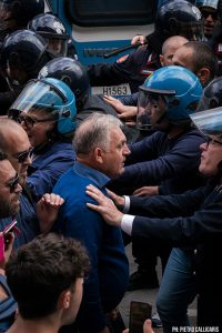 Osservare le forze dell’ordine in tenuta antisommossa agire contro inermi cittadini che manifestano nel giorno dell’anniversario della strage di Capaci provoca un senso di profonda vergogna. La stessa che si prova nel vedere accanto alla sorella del giudice assassinato il presidente della Regione Renato Schifani, a lungo indagato per mafia e poi archiviato, così come il sindaco di Palermo Roberto Lagalla, sostenuto durante la sua campagna elettorale da Marcello Dell’Utri e Totò Cuffaro, due condannati per mafia (il primo per concorso esterno in associazione mafiosa, il secondo per favoreggiamento). Ma in questo mondo al contrario vedere comunque tanti giovani, uomini, donne, famiglie intere con bambini, che gridano “Fuori la mafia dallo Stato” restituisce l’onore a un Paese ferito. Tradito da quel pezzo di Stato che non sopporta di essere chiamato in causa.