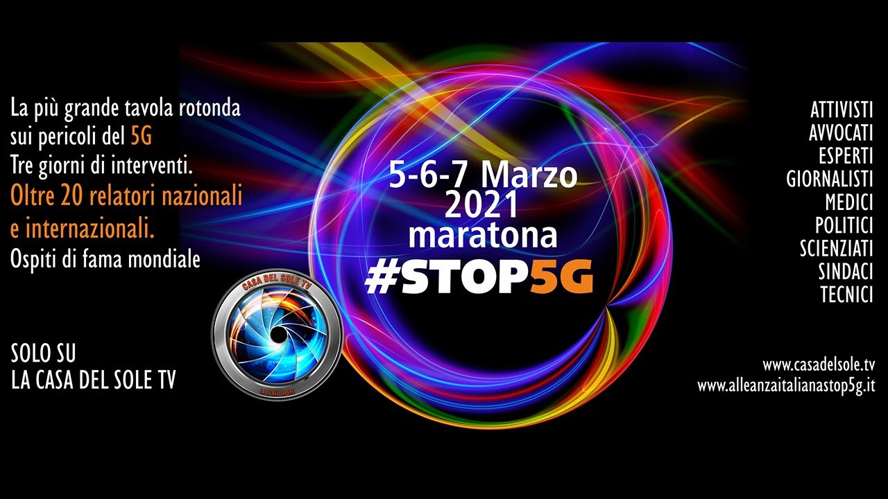 Alleanza Italiana Stop 5G e la Casa del Sole Tv organizzano la maratona Stop 5G, la più grande tavola rotonda sui pericoli del 5G che vedrà la partecipazione di oltre 20 relatori nazionali e internazionali, con ospiti di fama mondiale.